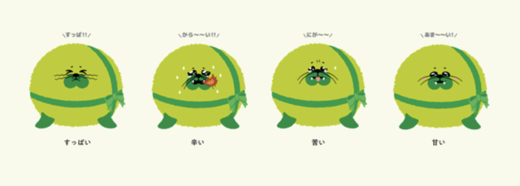 ほかにも、リボンの結び目を前にもってきたり、より親しみやすい顔つきにしたりと、初期から変更を加えています。表情を出しやすいよう眉毛もつけて、基本の喜怒哀楽のパターンのほかにも、ニュータスは食品を扱っているので、味覚の表情のパターンもつくりました。
